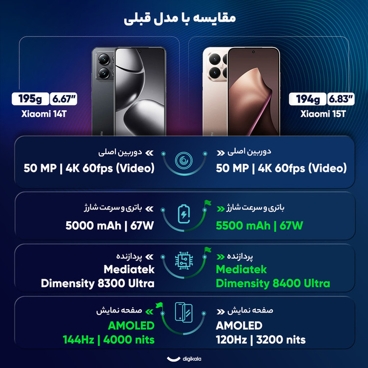 گوشی موبایل شیائومی مدل 15T دو سیم کارت ظرفیت 512 گیگابایت و رم 12 گیگابایت