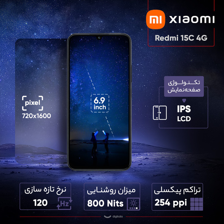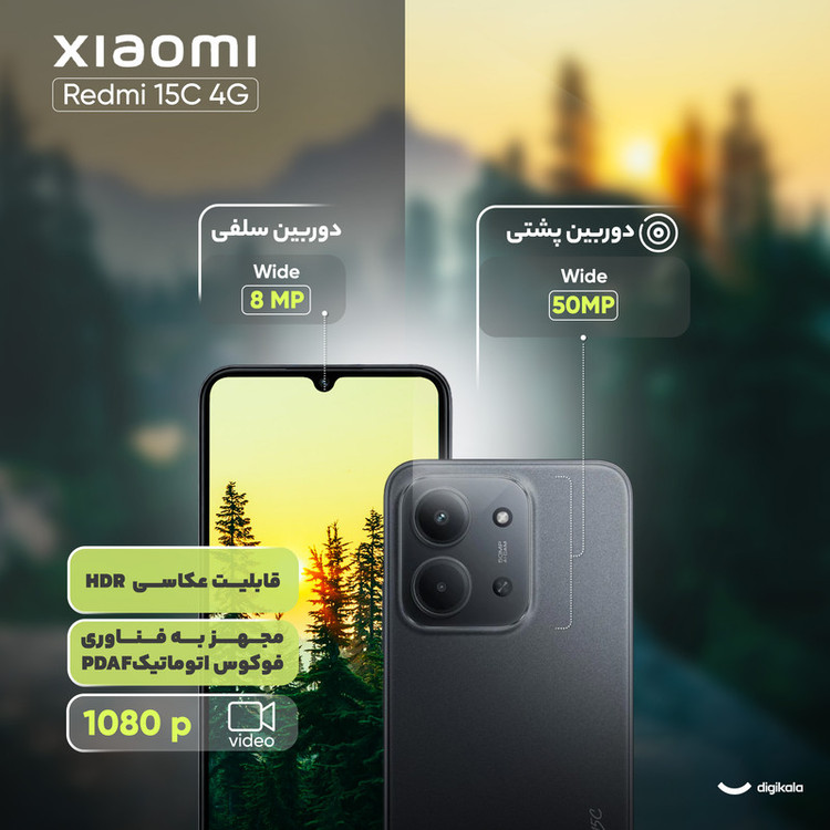 گوشی موبایل شیائومی مدل Redmi 15C 4G دو سیم کارت ظرفیت 256 گیگابایت و رم 8 گیگابایت