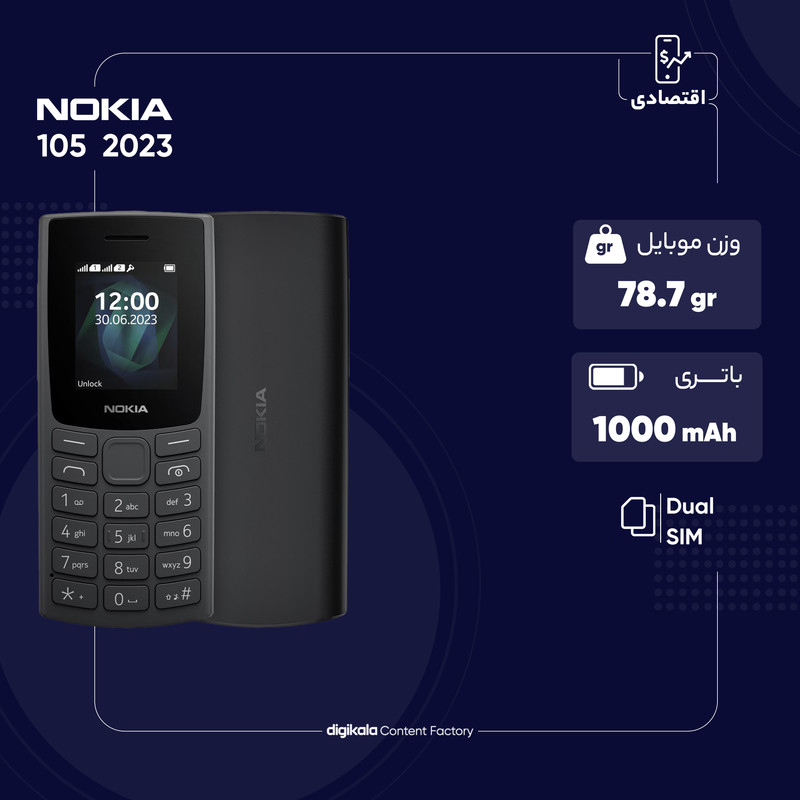 اگر به دنبال خرید گوشی هستید که برای استفاده روزمره عملکرد قابل قبولی داشته باشد، قطعا گوشیهای کلاسیک میتوانند گزینه بسیار مناسبی را در اختیارتان قرار دهند. نوکیا هم در این زمینه عملکرد بسیار خوبی را بهنمایش گذاشته و مدل 105 2023 یکی از این محصولات باکیفیت است. این گوشی به صفحهنمایش 1.8 اینچ با رزولوشن 120×160 پیکسل رنگی مجهز شده است که پر نمایش آیکونها و اعلانها، وضوح تصویر خوب و قابل قبولی دارد. خبری از سنسور دوربین سلفی و دوربین اصلی برای این گوشی نیست که اتفاق کاملا طبیعی است. به نسبت مدل 2022 این گوشی از طراحی متفاوت و البته کاربرپسندتری بهره برده و دکمههای صفحهکلید هم زیر صفحهنمایش قرار گرفتهاند و ابعاد مناسب و متریال باکیفیت در نظر گرفته شده برای دکمههای صفحهکلید، امکان استفاده راحت و سریع را برای شما فراهم کرده است. بهره بردن از باتری با میزان ظرفیت 1000 میلیآمپرساعت سبب شده تا نوکیا 105 2023 همانند اکثر گوشیهای کلاسیک این شرکت، به ازای هر بار شارژ صد درصدی، توانایی ارائه زمان آماده بهکار بالایی را داشته باشد و با یک بار شارژ، تا چند روز نیاز به شارژ دوباره نداشته باشید. در مجموع اگر به دنبال خرید گوشی کلاسیک با قیمتی ارزان هستید که در اجرای فعالیتهای روزمره عملکرد خوبی داشته باشد، نوکیا 105 2023 میتواند گزینه بسیار مناسبی باشد.